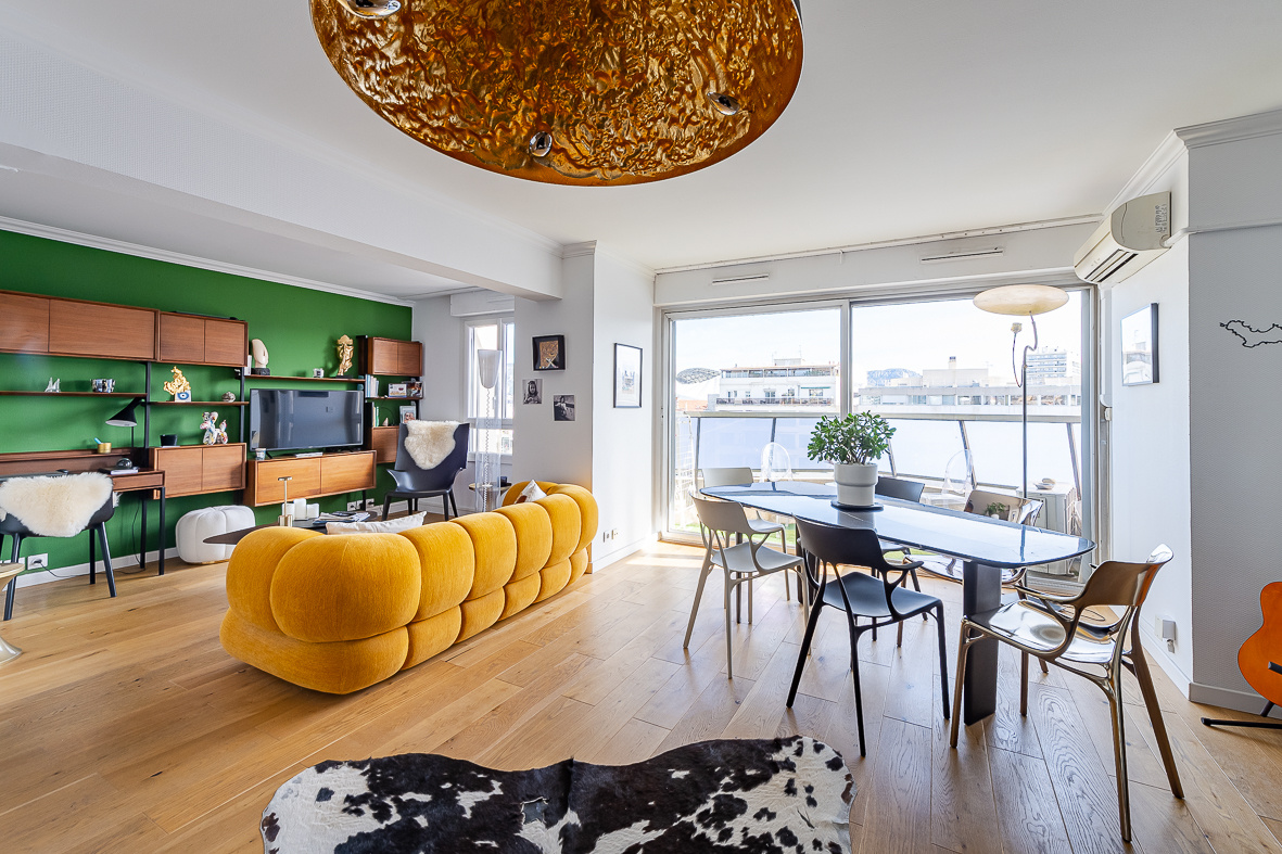 Ce charmant appartement traversant est composé d’un vaste séjour de 33 m² ouvert sur la terrasse de 12 m² plein SUD, d’une cuisine séparée avec arrière-cuisine et loggia offrant de larges espaces de rangement, de 3 chambres avec placards, de deux salles d’eaux et wc séparés.