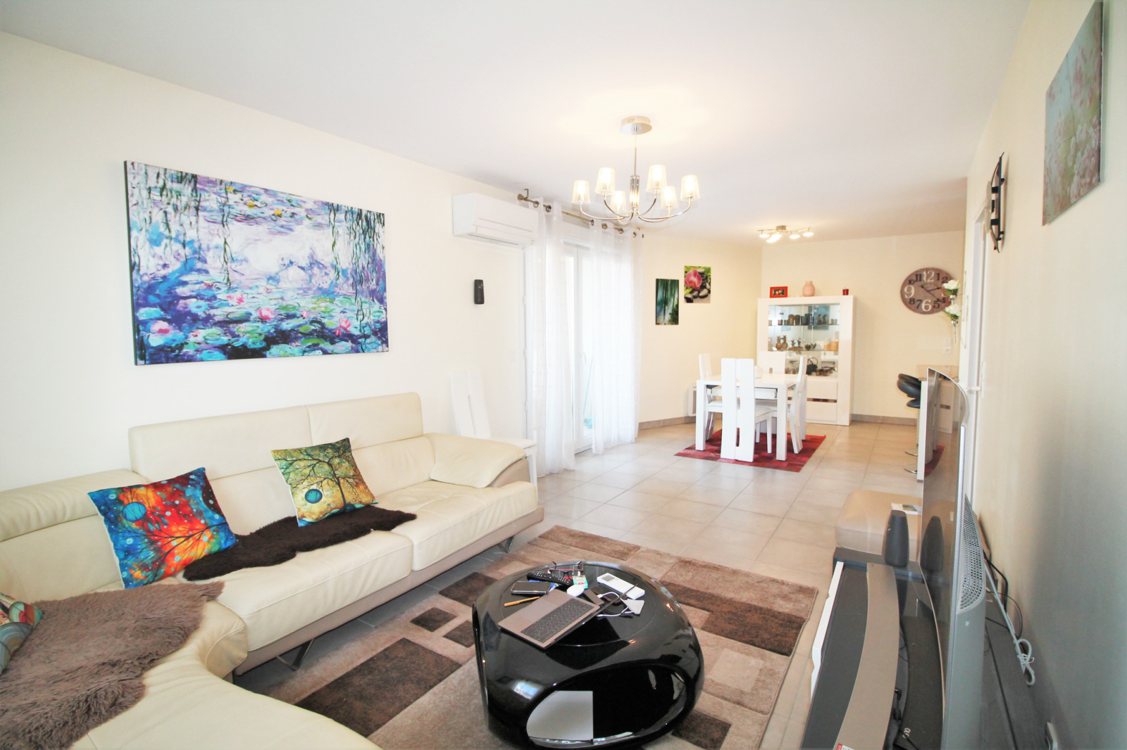 Il se compose d’un grand salon ouvert sur la terrasse, d’une cuisine américaine de qualité et d’un cellier.