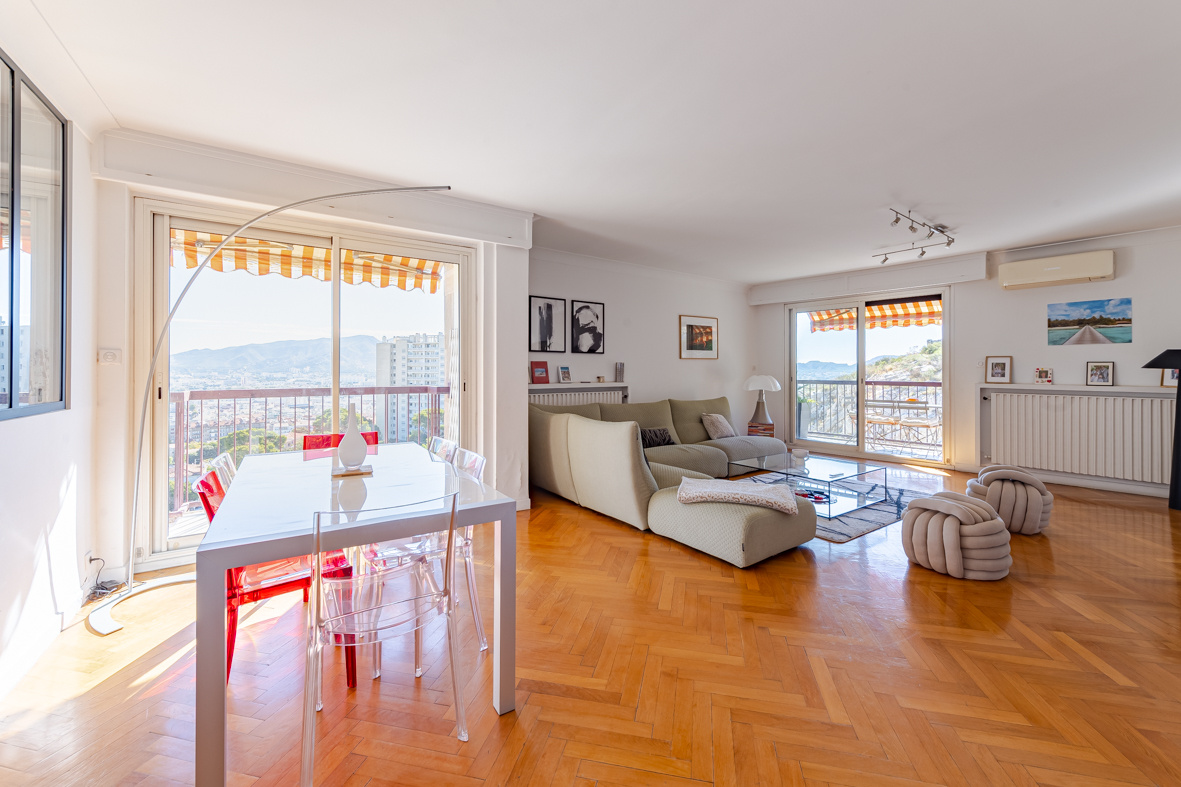 Situé dans une résidence ayant obtenu en 2025 le label architecture contemporaine remarquable, cet appartement bénéficie d’une vue panoramique extraordinaire et d’une triple exposition. Il se compose d’un vaste séjour avec double exposition et 2 extérieurs, d’une cuisine équipée séparée avec sa loggia, de 3 chambres, d’une salle de bain et d’un WC séparé. Une cave et un box électrifié (prix en sus) complètent ce bien très rare à la vente. Bonnes performances énergétiques grâce à une chaudière à condensation de 2022, refaite avec les dernières innovations et des panneaux photovoltaïques. Les points forts : calme absolu, dernier étage, climatisation dans tout l’appartement, double vitrage, volets roulants électriques, pas de vis-à-vis, parfait état, parc de 1.4 hectare, vue de carte postale, gardien et sécurité, arrêt de bus en bas de la résidence. Vous poserez vos valises !!!! Merci de nous téléphoner au : 06.16.72.95.98 Andros immobilier.
