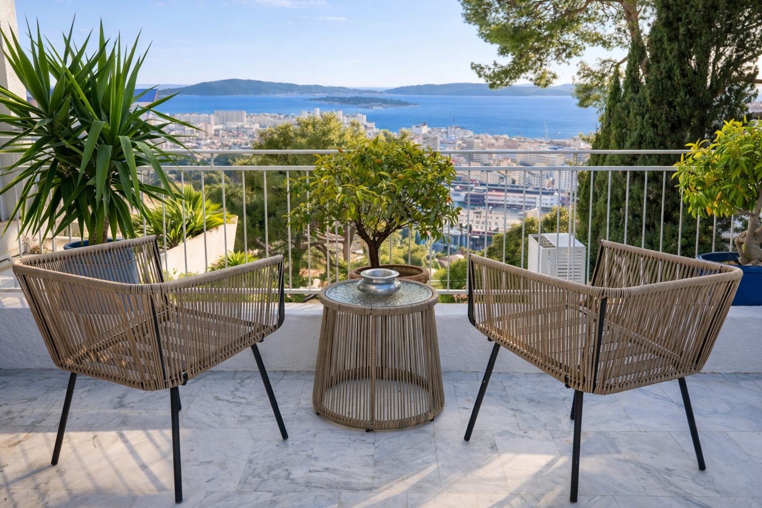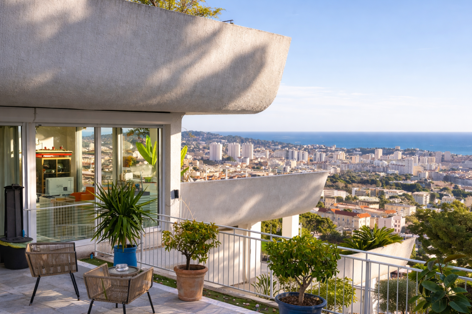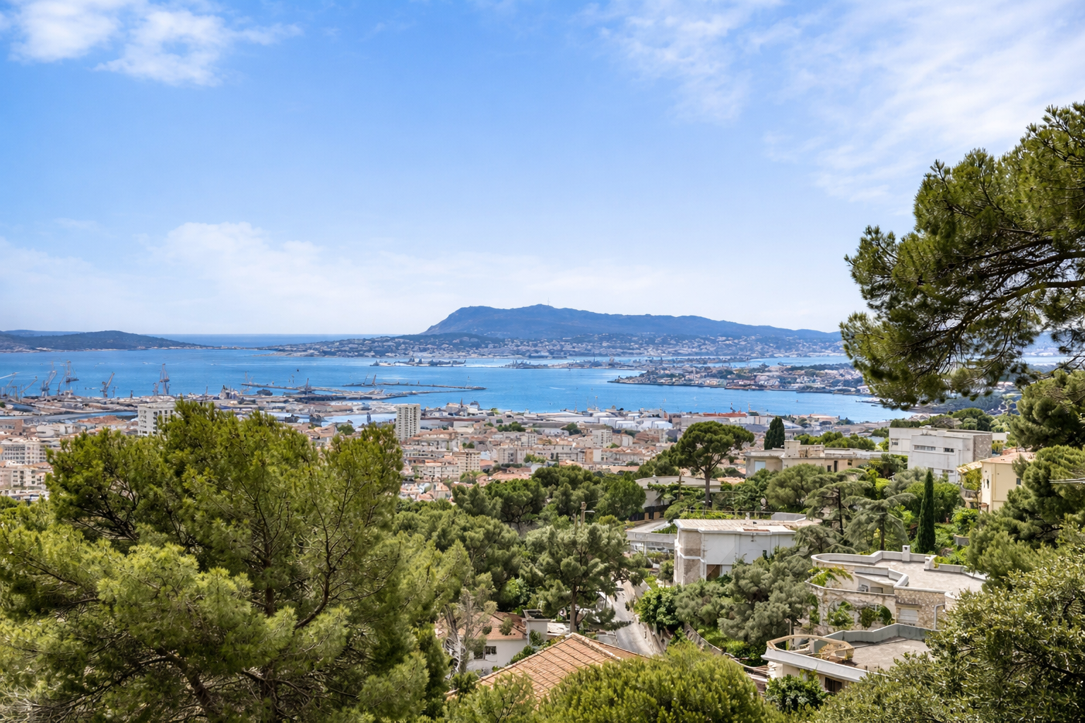 Dominant la rade de Toulon, au sein d’un ensemble architectural classé « Monument Contemporain Remarquable », cet appartement de 213 m² offre un cadre de vie rare, entre intimité absolue et panorama spectaculaire.